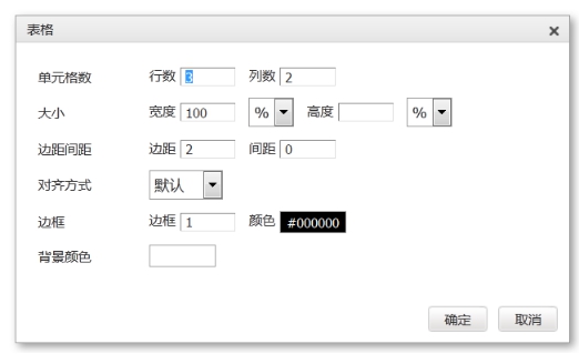 3) 行數(shù)、列數(shù)、邊距間距、對(duì)齊方式、邊框色、背景色按實(shí)際需要進(jìn)行選擇即可。