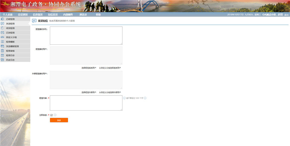 每個人都可以使用的系統(tǒng),底層是以老OA的短信收發(fā)模塊來實現(xiàn)真正的發(fā)送。