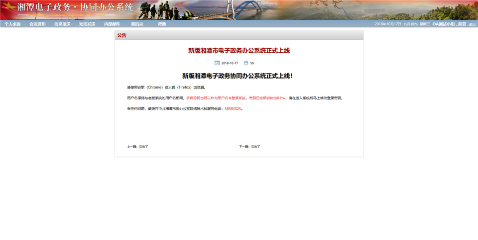 湘潭市電子政務協(xié)同辦公系統(tǒng)以下簡稱市委OA系統(tǒng)。