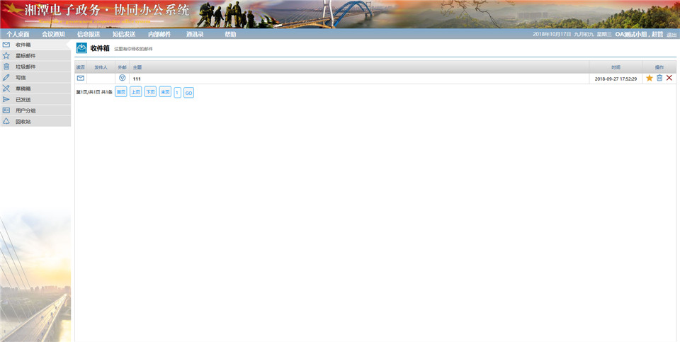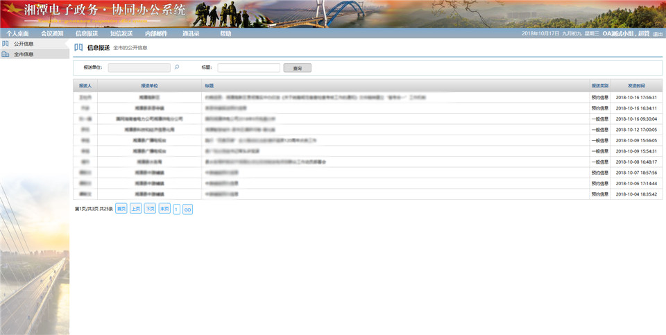 左側(cè)菜單分別是:接收、報送、草稿箱、自定義分組、公開、全市。