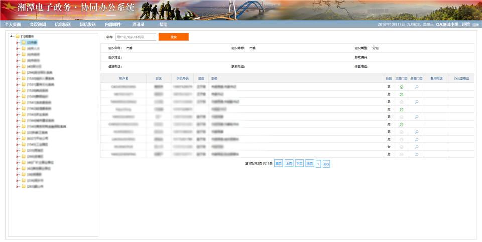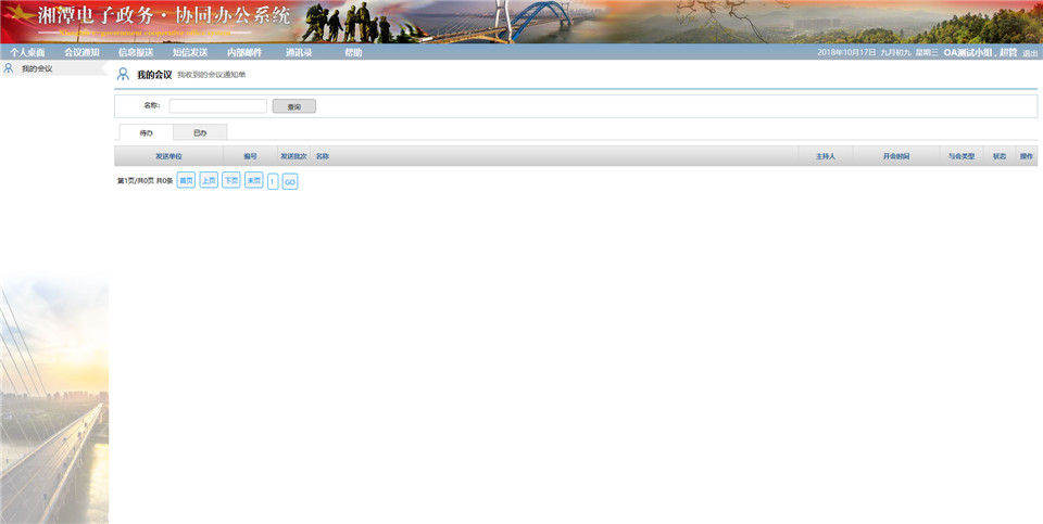 市委OA系統(tǒng)是是在老的OA系統(tǒng)上的升級和改版。主要有會議通知、信息報送、消息發(fā)送、內(nèi)部郵件、通訊錄幾大功能模塊。下文中將對短信發(fā)送、信息報送、會議管理三個模塊功能及界面規(guī)劃進行簡要說明。